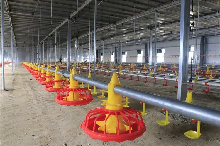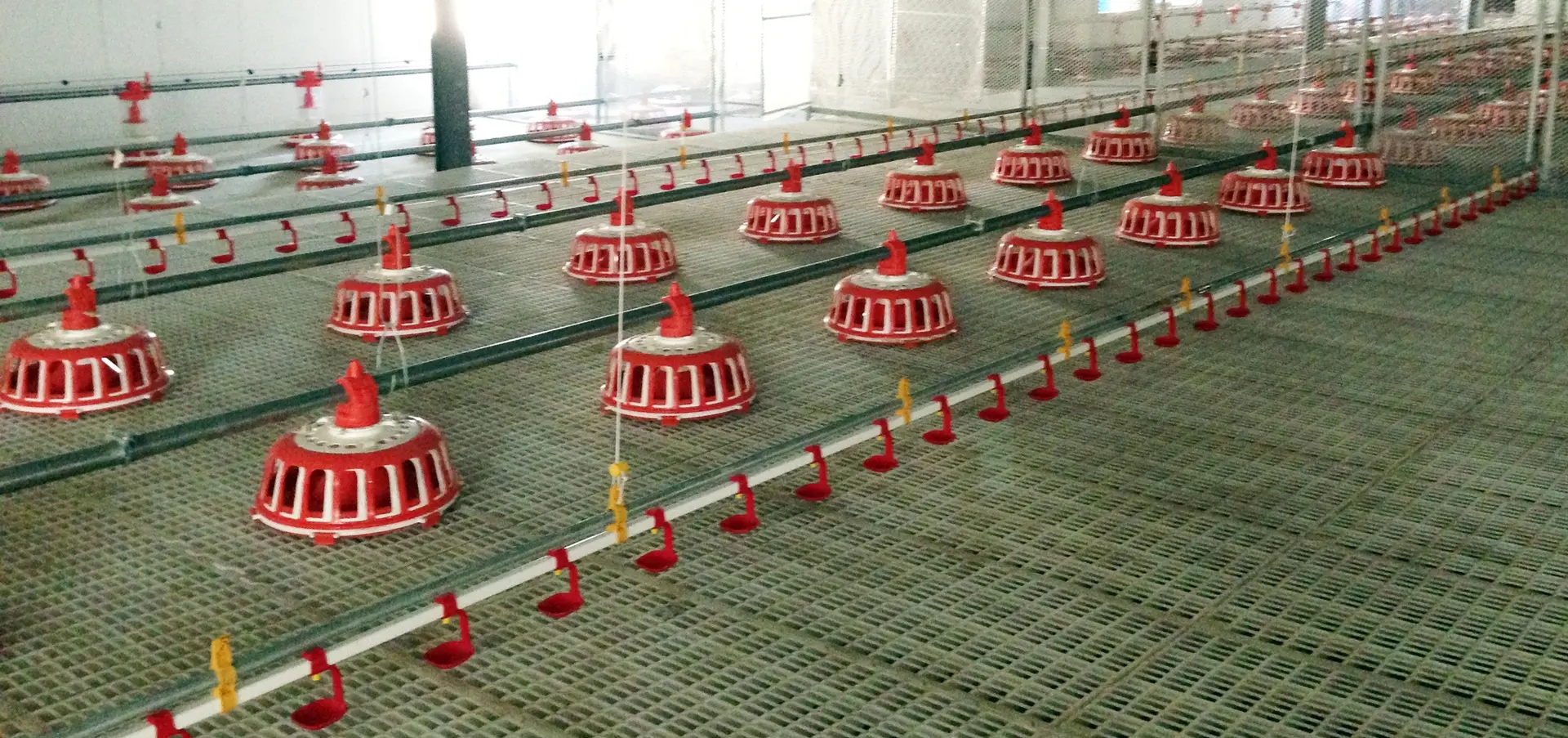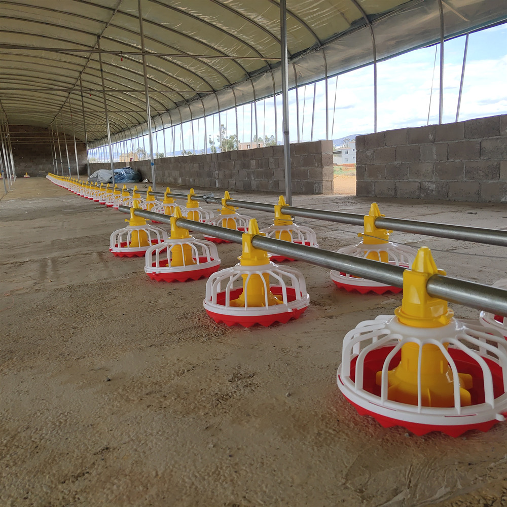 A broiler feed line is an automated feeding system designed for free-range broilers. The system mainly consists of a main feed line, an auxiliary feed line, feed trays, and feed hoppers.
